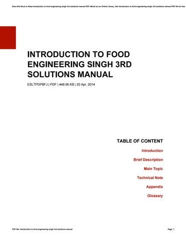 Read Online introduction to food engineering solutions manual Doc online is a convenient and frugal way to read introduction to food engineering solutions manual you love right from the comfort of your own home. Yes, there sites where you can get Doc "for free" but the ones listed below are clean from viruses and completely legal to use.